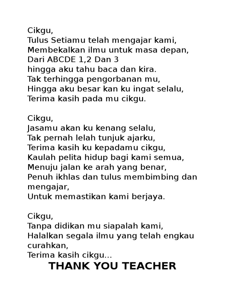 Sajak Terima Kasih Cikgu Wednesday, September 7, 2022 Add Comment Edit Pantun Terima Kasih Untuk Cikgu Sajak Terima Kasih Cikgu Youtube Sajak Terima Kasih Pdf Sajak Terima Kasih Cikgu Pdf Sajak Terima Kasih Cikgu You have just read the article entitled Sajak Terima Kasih Cikgu. You can also bookmark this page with the URL : https://laneyatlarsen.blogspot.com/2022/09/sajak-terima-kasih-cikgu.html Share this post